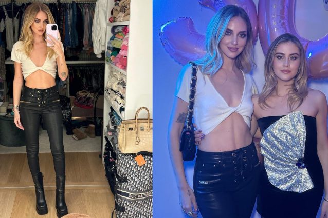 Chiara Ferragni era tra gli invitati alla festa per i 30 anni della sorella Valentina e per l'occasione ha puntato tutto su un look rock. Pantaloni di pelle stringati, ombelico in vista e maxi zeppe: ecco tutti i dettagli del look.