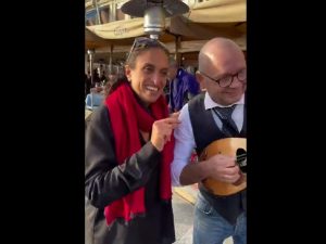 La cantante israeliana, dopo essersi concessa un pranzo in uno dei tanti ristoranti che sorgono sul Lungomare, si è esibita nel suo più grande successo accompagnata da un mandolino.