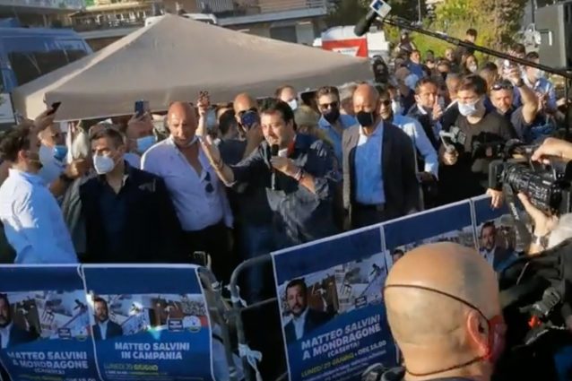 Il leader della Lega Matteo Salvini sta per tornare a Mondragone, in provincia di Caserta, nella zona rossa dei palazzi ex Cirio dove si è sviluppato un focolaio di Coronavirus. A distanza di pochi giorni, Salvini torna dopo le contestazioni: il 29 giugno, infatti, a causa dei manifestanti contro di lui, il leader della Lega fu costretto a rimandare il suo comizio.