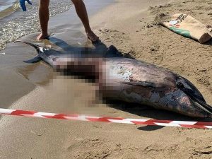Dopo i due esemplari di Stenella Striata alla deriva al largo di Ostia con segni di morsi sul corpo, un altro esemplare di delfino si è arenato sulla spiaggia a Lido dei Pini. Anche questo presenta lesioni compatibili con l'attacco di uno squalo. Non è chiaro se gli animali siano stati mangiati dopo essere morti.