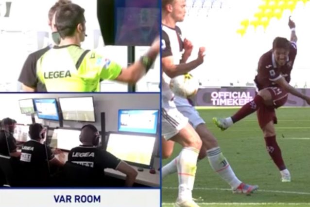Nel finale di primo tempo di Juventus-Torino, l'arbitro Maresca aiutato dal VAR assegna un rigore ai granata: il tocco di mano di de Ligt in area bianconera su tiro di Verenguer è considerato falloso: tiro dagli 11 metri (segnato da Velotti( e ammonizione per il centrale bianconero.