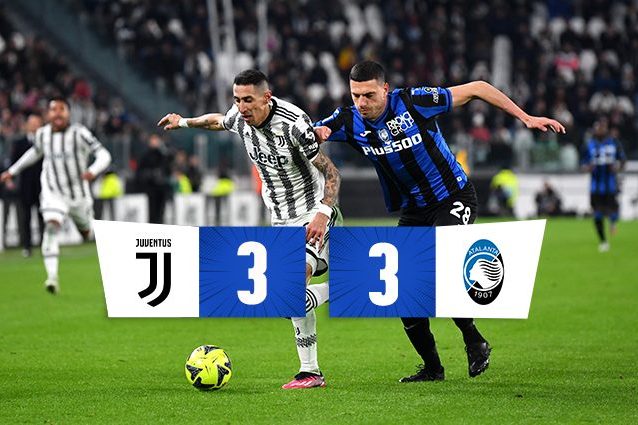 Fischi all'inno della Serie A e 6 gol nella sfida tra bianconeri e la 'dea' allo Stadium. Il pareggio (3-3) fa felici Inter e Roma che restano +2 sulla squadra di Gasperini trascinata da Lookman (terza doppietta). Grande prova di carattere dei bianconeri ma 3 sbavature fatali rovinano tutto.