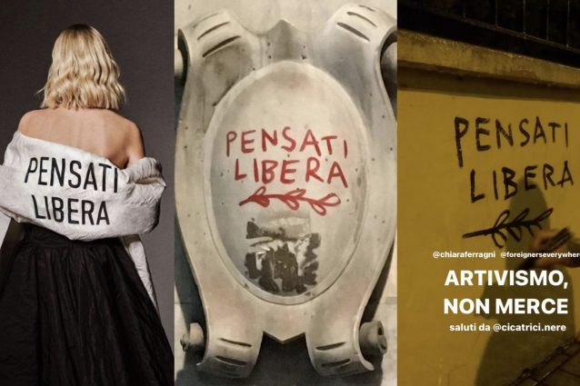 È polemica sulla scritta dell'abito-manifesto di Chiara Ferragni nella prima serata del Festival di Sanremo 2023, accusata di aver sbagliato il credito artistico.