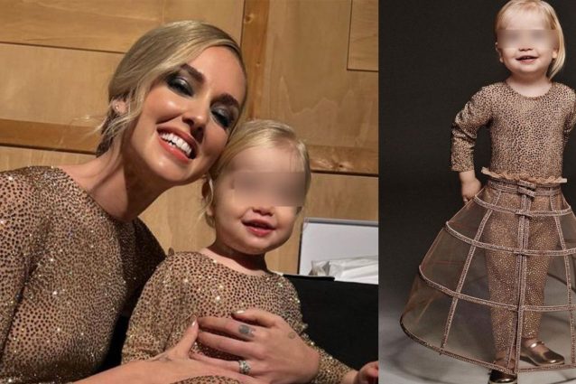Chiara Ferragni ha chiuso la serata sanremese con una tutina nude scintillante abbinata a gonna-gabbia. Sua figlia Vittoria ha sfoggiato la stessa tutina. Il look gemello ha un significato: le bambine di oggi sono le donne del domani, il futuro è nelle mani delle nuove generazioni.