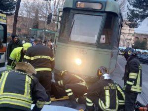 Incidente a piazza di Porta Maggiore: nel pomeriggio una donna di 63 anni è rimasta incastrata sotto al tram. Trasportata d'urgenza all'Umberto I, si trova in codice rosso.