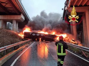 Incidente stradale oggi sull'autostrada A1, all'altezza del km 274: un tir è precipitato giù dal viadotto Marinella e ha preso fuoco. Morto l'autista. Chiuso il tratto tra Calenzano e Barberino di Mugello in direzione Bologna.