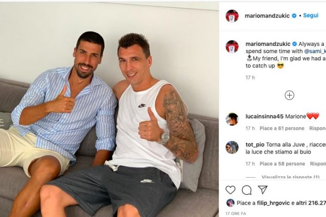 Dopo aver postato una fotografia su Instagram, nella quale è stato immortalato insieme a Sami Khedira, Mario Mandzukic ha scatenato la reazione dei tifosi della Juventus. In molti hanno infatti chiesto all'attaccante croato di tornare a Torino e di non accettare eventuali offerte da parte dell'Inter.
