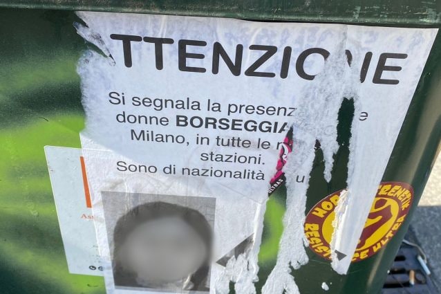 Dopo le polemiche sui video delle presunte borseggiatrici diffusi sui social, spuntano anche foto segnaletiche attaccate abusivamente sui cestini fuori dalle stazioni della metro di Milano.