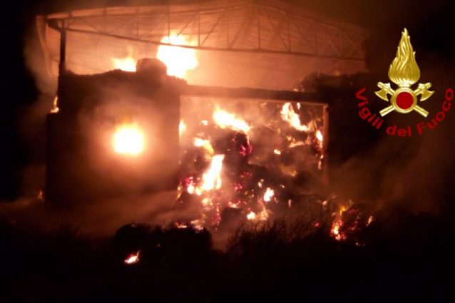 Grosso incendio nella notte a Montecalvo Irpino, nell'Avellinese: in fiamme un capannone con all'interno oltre seicento rotoballe di fieno. Fiamme alte e grossa colonna di fumo nero: le operazioni dei vigili del fuoco, giunti dalle sedi di Grottaminarda, Ariano Irpino ed Avellino, sono ancora in corso.