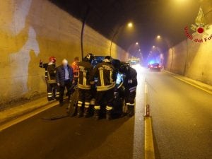 Due automobili e un furgone coinvolti in un incidente nella galleria del monte Pergola, sul raccordo Salerno-Avellino; sul posto i Vigili del Fuoco e il 118.
