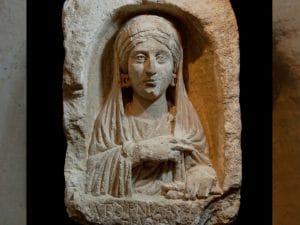 Si tratta di una stele funeraria risalente fra la fine del II secolo a.C. e quella del II secolo d.C. prelevata dalla necropoli di Zeugma, in Turchia, durante degli scavi clandestini.