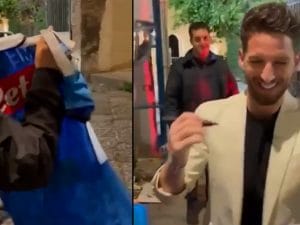 Anche il calciatore belga è tornato a Napoli per festeggiare il terzo scudetto. All'esterno della sua casa, Dries si è fermato per salutare alcuni tifosi, dando vita a un divertente siparietto.