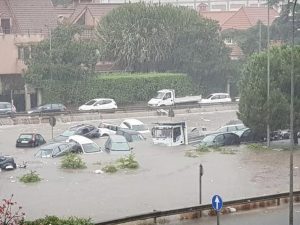 Bomba d'acqua a Palermo, dove un violento nubifragio ha letteralmente sommerso parte della città, allagando strade e abitazioni. Due le persone che sono morte annegate nella propria vettura. Alcuni automobilisti, tra cui anziani, a nuoto hanno cercato di raggiungere un luogo sicuro, abbandonando i propri mezzi. Tra le zone più colpite via Messina Marine, con il Buccheri La Ferla allagato, e via Ugo La Malfa.