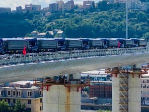 Nelle scorse ore infatti è partito il collaudo statico del Ponte di Genova con ben 56 autoarticolati che hanno attraversato il viadotto con quasi 2.500 tonnellate di carico. Si tratta però solo di una prima fase visto che le provedureranno per l'intera settimana interesseranno anche la rampa di innesto con l'autostrada A7.