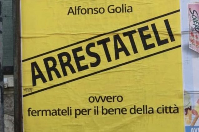 Un manifesto anonimo con il nome del sindaco di Aversa, Alfonso Golia, e dei consiglieri di maggioranza e la scritta “Arrestateli” è comparso questa mattina in diversi punti della città.In calce, anche un chiarimento “ovvero fermateli per il bene della città”. L'episodio ha suscitato subito la reazione indignata del primo cittadino del comune del casertano: “Evidentemente in questa città il lavoro per la legalità dà fastidio – ha scritto il sindaco Alfonso Golia – ma noi non ci fermiamo”.