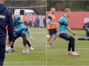 La magia di Hojlund in allenamento con la Danimarca: segna con un colpo di tacco impossibile
