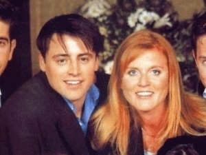 La duchessa di York ha reso omaggio sui social all'attore statunitense postando una foto che la ritrae con il cast della sitcom, ricordando il suo cameo nella puntata ambientata a Londra.