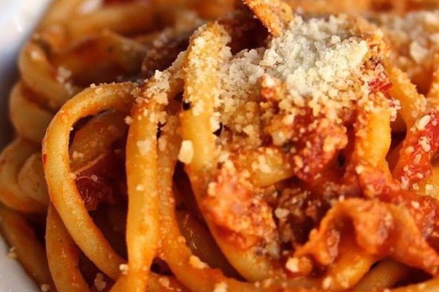 In molti si stupiranno nello scoprire che nel Talismano della Felicità, la raccolta di ricette della cucina italiana più longeva e famosa, gli spaghetti all'amatriciana si preparano con la cipolla. Al contrario la tradizione non ammette deroghe: l'amatriciana non vuole né aglio né cipolla, solo guanciale, pecorino, passata di pomodoro, sale e pepe quanto basta.