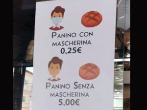 Da Palma Campania, nella provincia di Napoli, arriva l'idea di un commerciante per scoraggiare clienti - e cittadini in generale - ad andare in giro senza mascherina. Un fornaio ha deciso di far pagare il pane a prezzo maggiorato ai clienti che entrano nel negozio senza indossare la mascherina.