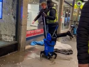 Il caso sabato sera in Victoria Street a Londra, all'esterno di un McDonald's e di una banca adiacente. Dopo il clamore per la vicenda, l'azienda di fast food si è scusata per l'accaduto e ha annunciato di aver allontanato tutto lo staff addetto alla sicurezza del punto vendita.