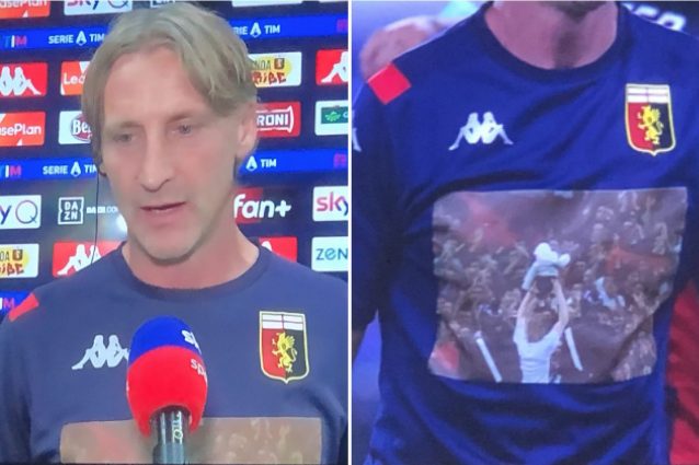 Davide Nicola dopo la conquista della salvezza con il Genoa grazie alla vittoria con il Verona ha festeggiato con una maglietta molto particolare. Si tratta di una divisa con una foto che gli fu regalata dai tifosi al momento del suo arrivo e che lo immortala mentre alza al cielo il figlio, sotto la curva.