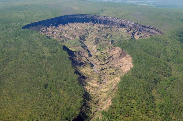 Il riscaldamento globale sta accelerando la crescita del cratere di Batagaika: la voragine ha già raggiunto il chilometro di lunghezza e cento metri di profondità, causando frane continue nell’area.