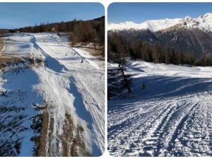 Un video mostra le piste da sci deserte a ridosso di Sauze d'Oulx. Ai duemila metri di quota di Sportinia tuttavia la situazione è decisamente migliore.