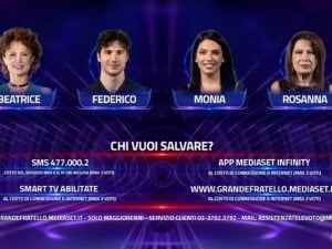 Non c’è stata alcuna eliminazione nella puntata del Grande Fratello del 30 dicembre 2023. Il televoto ha eletto la concorrente meno votata, risultata essere Monia La Ferrera che è andata dritta tra i protagonisti della nomination eliminatoria della prossima settimana. La puntata si è conclusa con Beatrice, Sonia, Federico e Rosanna in nomination.