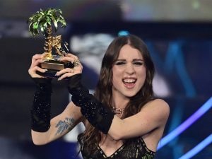 Angelina Mango per la finale ha scelto un beauty look ispirato all'estetica grunge anni Novanta: un modo per comunicare grinta, audacia, determinazione.