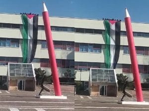 Una maxi bandiera della Palestina è stata calata dai tetti dell'Università di Salerno: si tratta dell'ennesima manifestazione di sostegno al popolo palestinese degli ultimi giorni.