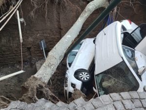 Voragine al Vomero inghiotte auto con 2 persone dentro in via Morghen. Palazzo evacuato