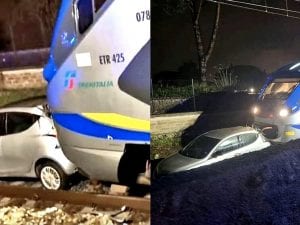 L'incidente è avvenuto intorno alle 19.30 di venerdì 23 febbraio a Ciampino. Un'automobile è rimasta incastrata nel passaggio a livello ed è stata travolta da un treno in transito. Per fortuna la conducente aveva abbandonato in tempo la vettura.