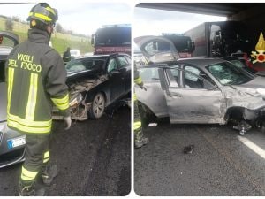 Tre persone estratte dalle lamiere è il bilancio dell'incidente stradale avvenuto sull'autostrada A1 a Fiano Romano. Due auto e un mezzo pesante si sono scontrati ed è stato necessario l'intervento dei vigili del fuoco.