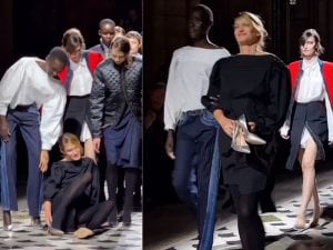 Alla Paris Fashion Week una modella è caduta in passerella a causa dei tacchi alti. La collega l'ha aiutata a rialzarsi, il pubblico l'ha sostenuta applaudendo.