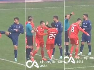 L'avversario gli dà un colpo sul petto e lui si butta a terra dopo essere stato spinto dal compagno di squadra: la simulazione diventa un'opera teatrale nell'Uzbekistan Superleague.