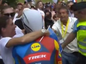L'UCI ha sanzionato con una multa assurda il ciclista francese Julien Bernard, che durante la cronometro corsa venerdì al Tour de France si è fermato un istante per un dare un veloce bacio alla moglie: "Comportamento sconveniente o inappropriato".