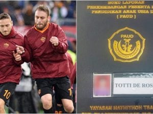 Pubblicato il 23 Luglio 2024 di Vito LamorteChiama il figlio ‘Totti De Rossi’, la clamorosa scelta di un tifoso della Roma in Indonesia Un tifoso della Roma in Indonesia ha deciso di chiamare il figlio con il nome delle due leggende giallorosse, ovvero 'Totti De Rossi'.Continua a leggere