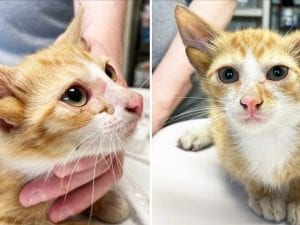 Le immagini di Audio, una magnifico gattino rosso e bianco nato con quattro orecchie. Nonostante la curiosa malformazione genetica, il micio non ha alcun problema di udito. È stato salvato all'interno di una scatola assieme a tre fratellini. Presto si potrà adottare.