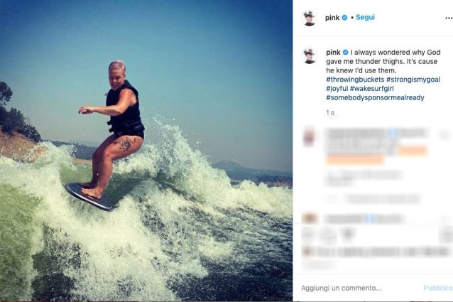 Anche Pink sostiene il concetto di body positivity. La cantante, infatti, pubblica sul suo profilo Instagram uno scatto nel quale si mostra intenta a cavalcare un'onda, non nascondendo la sua fisicità che lei stessa definisce "massiccia". Un post che richiama l'attenzione sulla necessità di accettarsi, senza l'ossessione per la bellezza e la perfezione a tutti i costi.