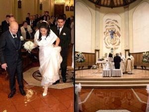 Acqua alle caviglie per sposi e invitati e parroco con gli stivali di gomma a Bellaria Igea Marina, tra i comuni colpito dal nubifragio del weekend in Emilia Romagna. Una cerimonia senza precedenti, a memoria anche dei più anziani, confidando nel detto “Sposa bagnata, sposa fortunata”.