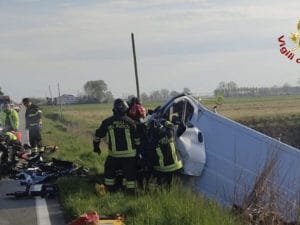Due persone sono morte e una è rimasta gravemente ferita in un violento frontale a Muzzana del Turgnano, in provincia di Udine: nell'incidente sono rimasti coinvolti un'auto e un furgone.