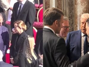 Il sagrato di San Pietro ha visto riunirsi Zelensky, Trump, Macron e Starmer, immortalati da telecamere e fotografi. Incontro a cui non ha preso parte Meloni, che invece è tornata nell'area riservata alle autorità civili dieci minuti dopo averla lasciata e per qualche minuto ha conversato con il presidente del Senato Ignazio La Russa, che a un certo punto ha scosso la testa visibilmente contrariato.