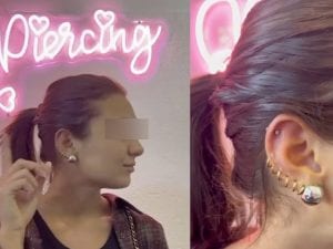 Si chiama helix ed è il nuovo piercing alla cartilagine di Chanel Totti che segue il trend layering indossando una cascata di orecchini tutti sullo stesso orecchio.