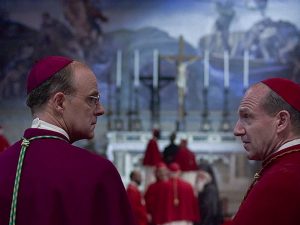 "Conclave" è stato girato tra Roma e Caserta: è stato necessario trovare una location alternativa, non potendo accedere con le riprese nella Cappella Sistina.