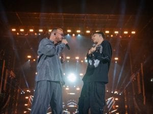 Durante il secondo concerto di Gigi D'Alessio allo stadio Maradona di Napoli c'è stato un momento emozionante tra il cantautore e il figlio, il cantante LDA.