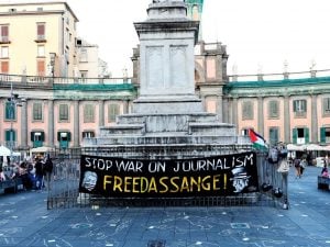 Pubblicato il 25 Giugno 2025 di Giuseppe CozzolinoA Napoli sagome bianche in piazza Dante per i 200 giornalisti uccisi a Gaza Il Comitato Free Assange Napoli disegna sagome bianche in Piazza Dante per ricordare i giornalisti uccisi a Gaza dall'8 settembre 2023 ad oggi.Continua a leggere