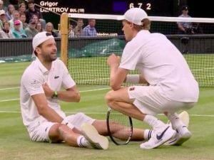 Pubblicato il 7 Luglio 2025 di Alessio MorraSinner salvato dal ritiro Dimitrov in lacrime a Wimbledon: Jannik avanza mentre era sotto 2-0 Jannik Sinner è ai quarti di finale di Wimbledon grazie al ritiro di Dimitrov, che aveva vinto i primi due set.Continua a leggere