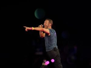 Il frontman dei Coldplay scherza sull'incredibile vicenda di Byron e Cabot scoperti insieme al concerto della band. Per l'ultima data del tour, avvertendo il pubblico dell'inquadratura, non ha potuto fare a meno di sorridere della vicenda.