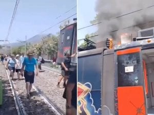 Treno della Circumvesuviana Napoli-Sorrento a fuoco alla stazione Villa Regina. Circolazione sospesa tra Torre Annunziata e Castellammare. Istituite navette bus.