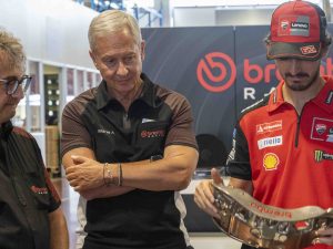 All'indomani del GP della Repubblica Ceca della MotoGP 2025, Bagnaia e il management Ducati visitano la sede Brembo: "Finalmente ho visto dove nascono i miei freni. Un'opera d'arte". Dopo un weekend difficile per Pecco, visita alla sede dell'azienda leader negli impianti frenanti. Clima disteso nonostante i risultati.